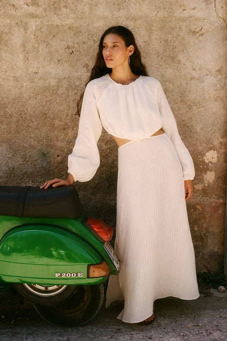 Emilia Cut-Out Maxi Dress in Off-White by Arkitaip