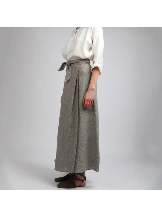 Maxi Wrap Skirt with Long Ties and Front Pleat