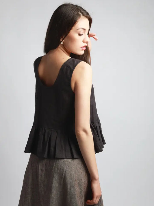 Playful Cropped Linen Top with Ruffles